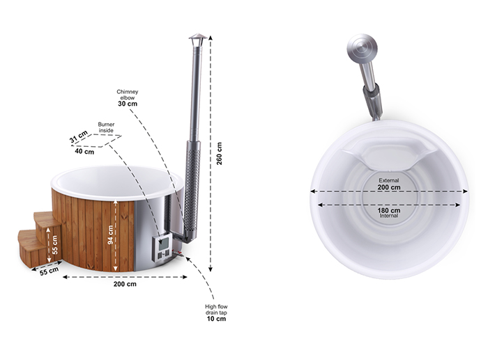 Med integrerad kamin värmer du upp tunnan väldigt snabbt (1.5-2 h)