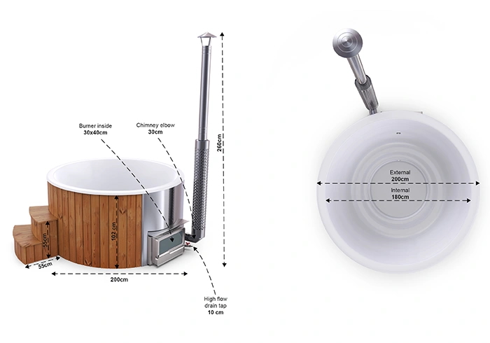 Med integrerad kamin värmer du upp tunnan väldigt snabbt (1.5-2 h)