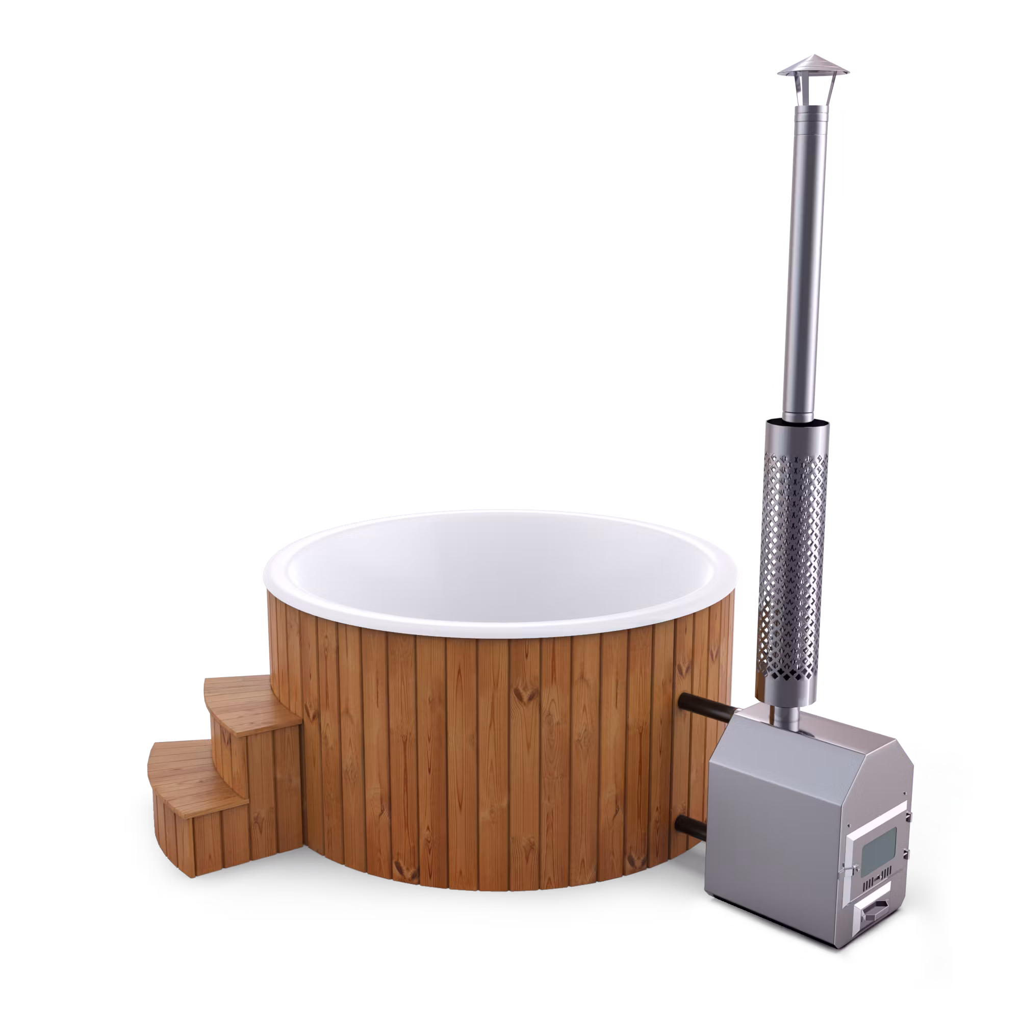 Med extern kamin värmer du upp tunnan väldigt snabbt (1.5-2 h)