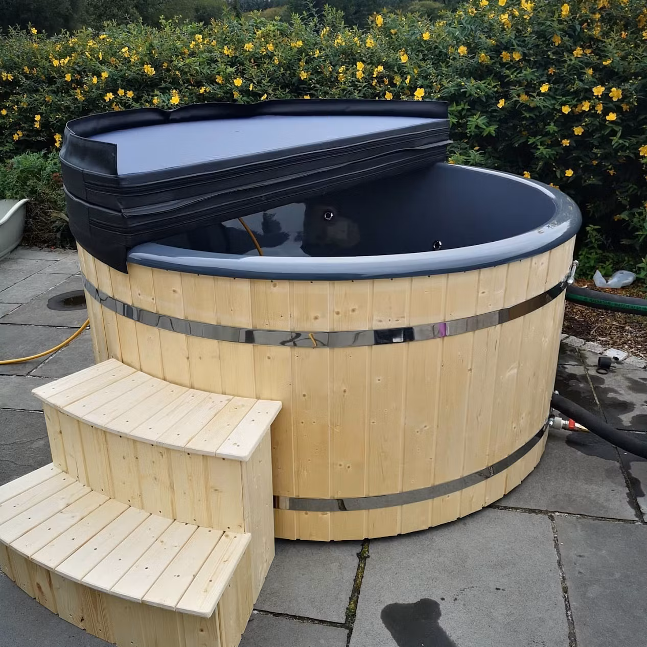 Badtunnan har skålade sitsar för bästa komfort, enkel att både elda och aska ur.