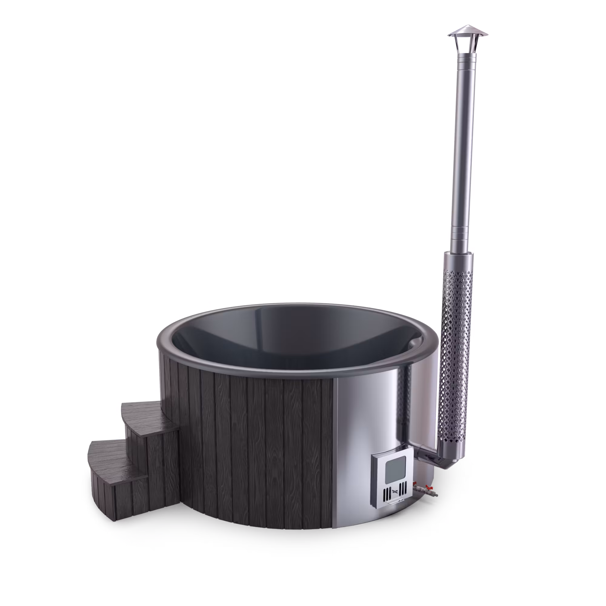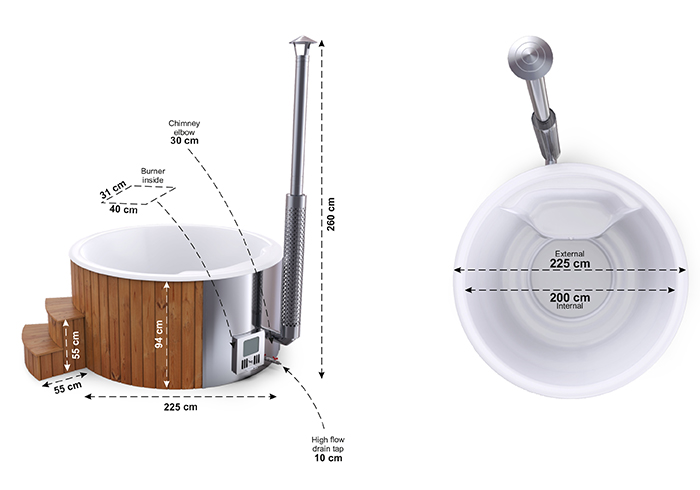 Med integrerad kamin värmer du upp tunnan väldigt snabbt (1.5-2 h)