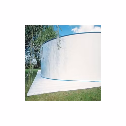 Innan uppställning av poolen lägger man alltid en bottenskyddsmatta under. Det skyddar linern och ger en angenäm känsla när man går på botten. Vid montage utan bottenskyddsmatta gäller inte poollinerns garanti! Bottenskyddsmattan levereras i 2-3 delar som läggs ihop tätt på marken och tillsammans bildar en stor matta. Tänk på att mattdelarna endast ska ligga kant i kant med varann, de får aldrig överlappa varann så att ojämnheter uppstår. Då mattan ligger på plats under poolen och denna vattenfyllts kan man skära bort de överflödiga mattdelarna som sticker ut under poolen. Använd en vass kniv och skär längs med poolens konturer.