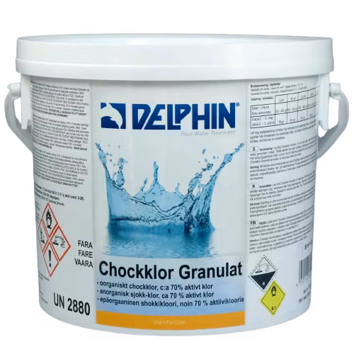 Att chockklorera poolvattnet är viktigt, detta för att mätta poolvattnet på klor vid uppstart samt att verkligen bryta ner mineraler, bakterier, alger och annat oorganiskt och organsikt smuts i ditt poolvatten. Badvattnet mår bra av att få sig en chockklorbehandling med jämna mellanrum under högsäsong. Tillsätt gärna efter dagar med mycket bad och varmt väder för att kompensera för den ökade klorförbrukningen.