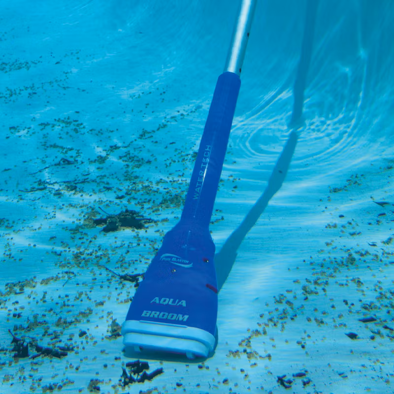 Poolblaster Aqua Broom är idealisk för snabb rengöring av sand, fläckar, smuts och alger för barn- och andra små pooler.
