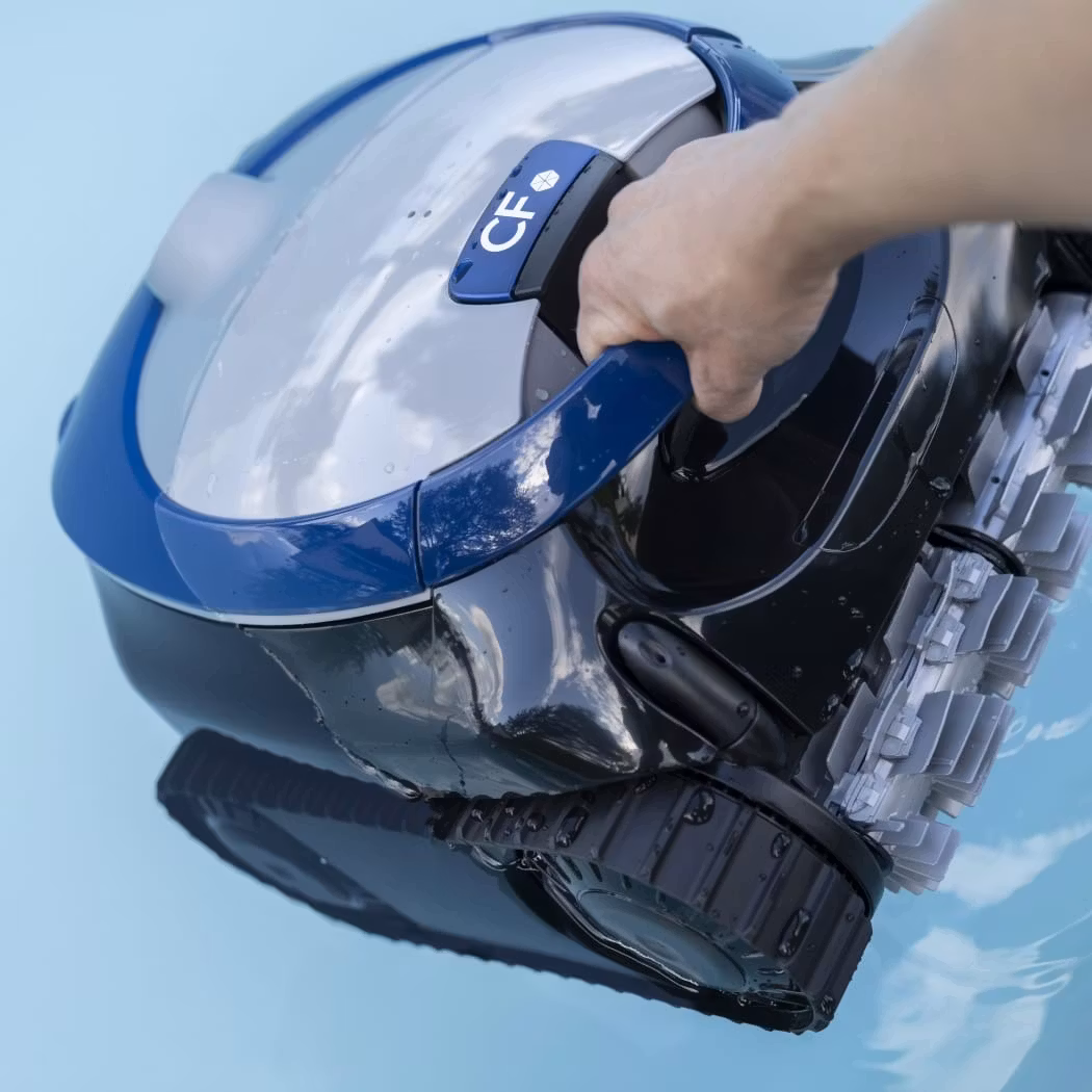 Roboten väger endast 9,5 kg och är smidig att lyfta i och ur vattnet. CF 3000CL PRO har en krok för att lyfta upp roboten ur poolen. Du kan även komplettera med en vagn för enklare transport och förvaring.