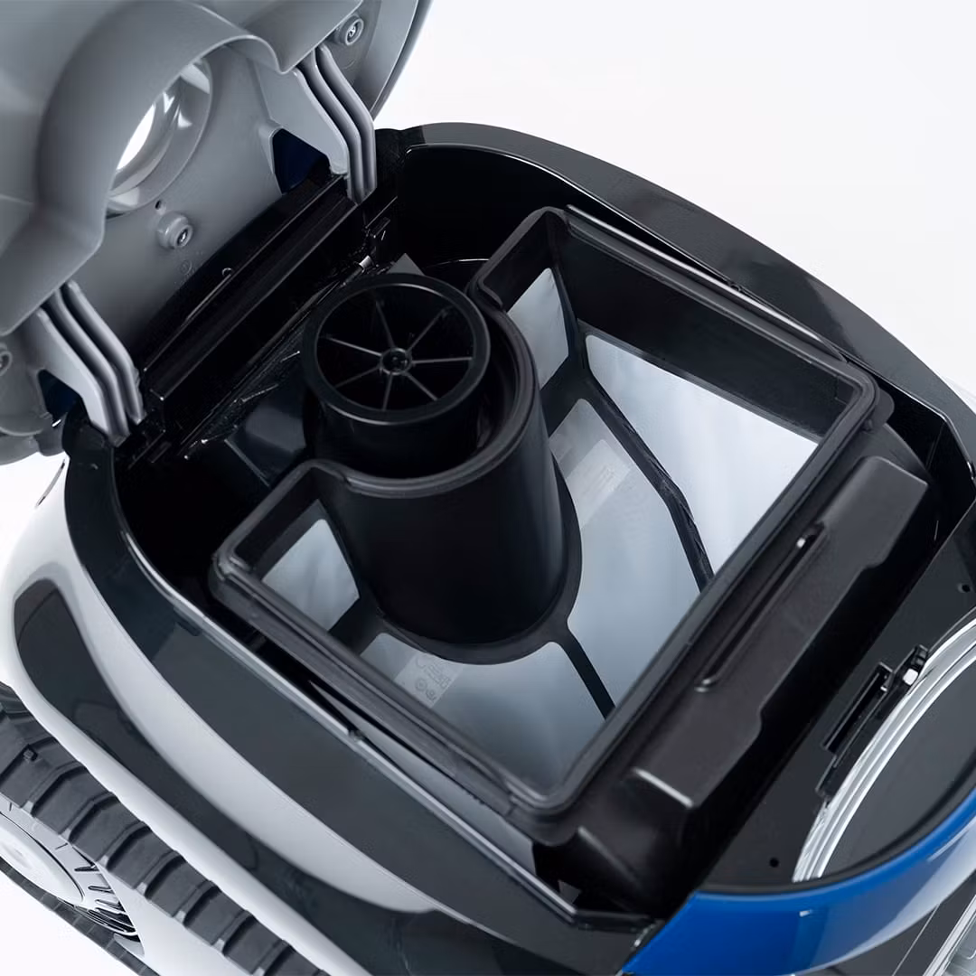 Poolroboten är utrustad med smart navigation som gör att den systematiskt rengör hela poolen. Du kan välja mellan två program: ett på 1,5 timmar för bottenrengöring och ett på 2 timmar där roboten rengör både botten, väggar och vattenlinje. Den effektiva PVC-borsten i spiralform lösgör smuts och avlagringar, medan den starka pumpen med en kapacitet på 12,5 m³/h suger upp partiklar i filterkorgen.