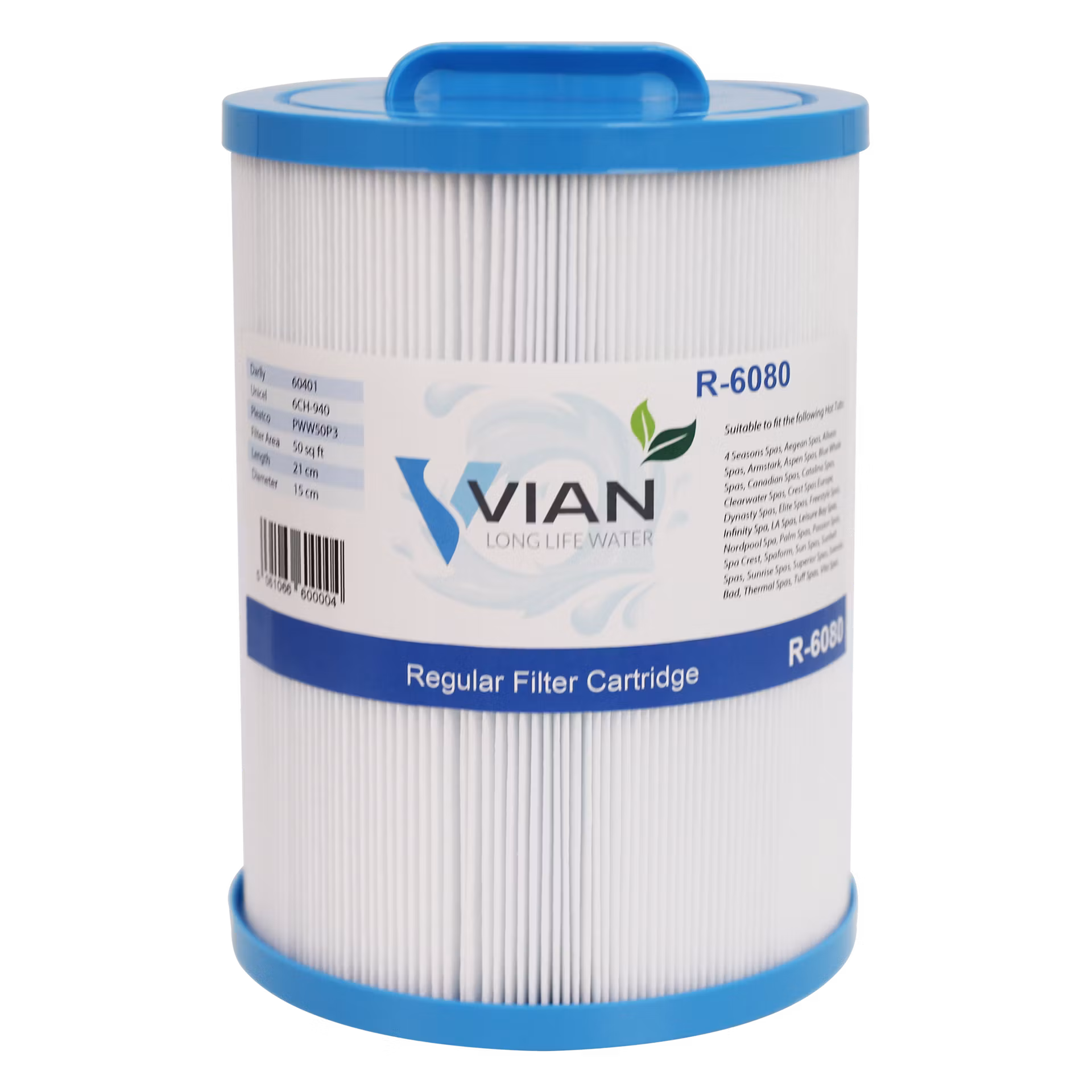 R-6080 Regular filterpatron från VIAN är ett kvalitativt spafilter som hjälper dig att hålla rent, klart och hygieniskt spabadsvatten. Detta filter är ett av de vanligaste på marknaden. Filterpatronen är utvecklad för snabb installation och jämn, driftsäker prestanda. Den fångar effektivt upp smuts, partiklar, oljor och andra föroreningar för att säkerställa stabil drift och god vattenkvalitet i ditt spabad.